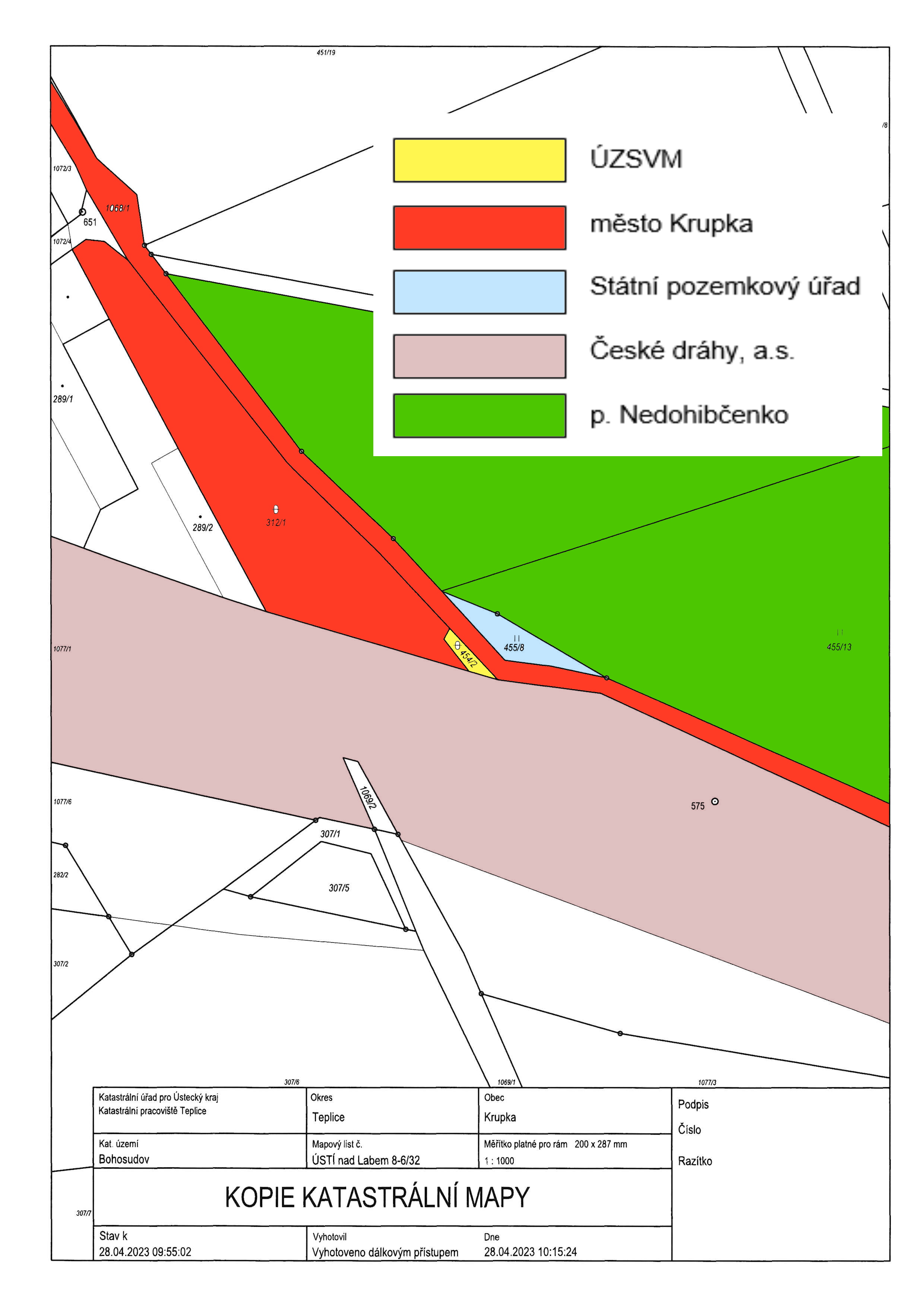 UKLÁDÁ provést místní šetření k řádnému zjištění průběhu hranic a užívání všech pozemků za účasti OÚPaSŘ. UKLÁDÁ předložit opětovné zaměření skutečného stavu. UKLÁDÁ předložit návrh záměru prodeje opakovaně Radě města Krupka k projednání. |